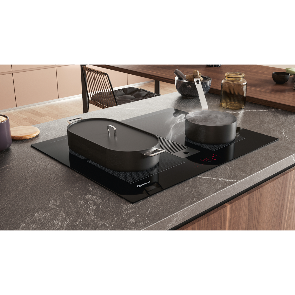 Få lugtfri tilberedning uden damp. Kogeplader med integreret emfang kombinerer funktionerne i både induktionskogeplader og emhætter med et innovativt udsugningssystem, der er integreret i kogepladen.