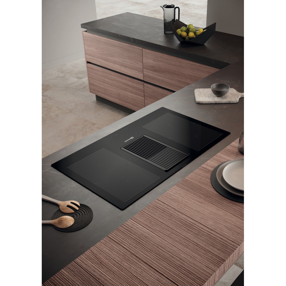 Få lugtfri tilberedning uden damp. Kogeplader med integreret emfang kombinerer funktionerne i både induktionskogeplader og emhætter med et innovativt udsugningssystem, der er integreret i kogepladen.